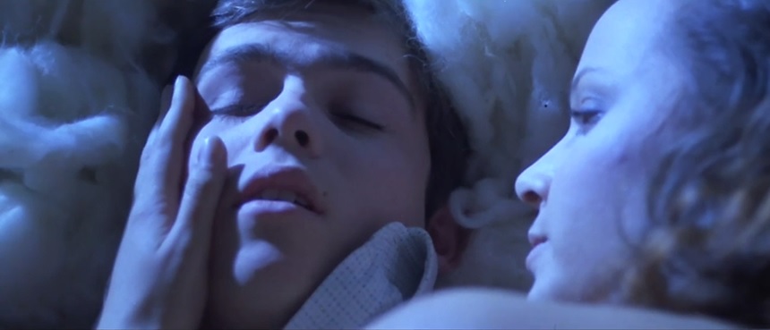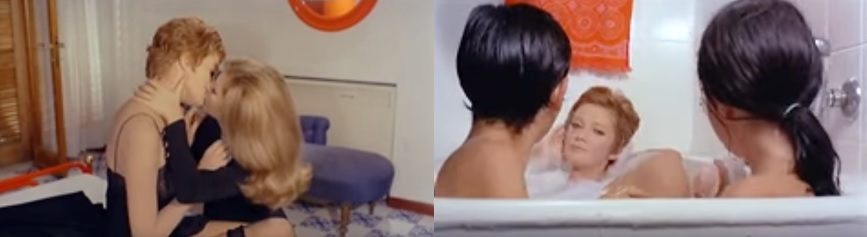 ▶ では政治思想色の強い 『 母親の思い / Cuore di mamma 』 は 『 青い体験 』 に比べて 〈 性的なもの 〉はどのように描かれているのでしょう。 一見すると、エロティックな要素はそれ程強くないのですが、その事の意味を考えてみる必要があるでしょう。 以下のようなレズシーンや親子3人での裸でじゃれ合う入浴シーンなどがるのですが、エロティックさを強烈に感じさせるものではありません ( 入浴シーンは実際の親子なので変な雰囲気が出るはずもないのですが )。