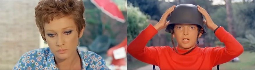 ▶ もっとも、それは 『 青い体験 』 に始まったことではなく、既に初期の作品である 『 母親の思い / Cuore di mamma 』 ( 1969 ) において過激な政治思想を体現する人間達の描写として示されている。 工場経営者であるブルジョワのアンドレアと離婚している ロレンツァ ( カーラ・グラヴィ―ナ )、その彼女とアンドレアとの間で生まれた彼女の3人の子供の9才の長男 マッシモ ( マウロ・グラヴィ―ナ ) の2人は、"共産主義者" と "ファシスト" という対立的なキャラクターを演じていて、その対立はそのまま家庭の崩壊へと至る壊乱へと繋がっていく。