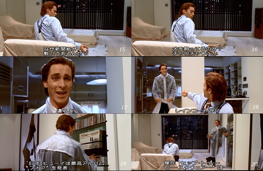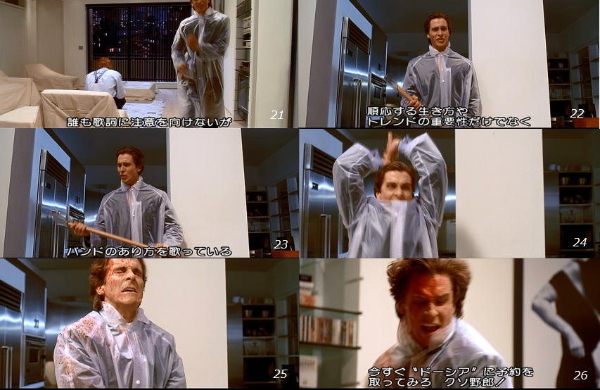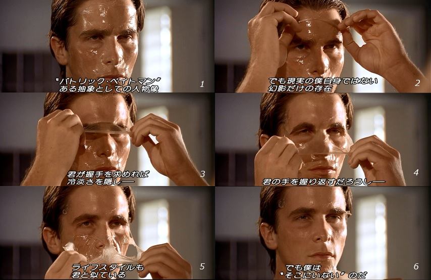 ■ Some people may think, "Why should it be necessary to bother introducing Empty Subject ? Some people may think, "Why not just depict him as a real person? But that would only reveal, at best, that the dark side behind Bateman is scandalous. In other words, it can only make the commonplace opinion that the film depicts the decadent side of the American consumer culture of the 1980s that created the heinous murderer known as Bateman. That is only the perspective of Bret Easton Ellis's original story.