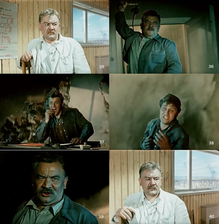 〈 a 〉 Golik and Katerina are attending a lecture by Grekov, a scientific engineer in the construction of a hydroelectric power plant ( 29~30 ). But Golik is more concerned with himself than the content of the lecture, thinking that marrying Grekov's daughter will further his career. Surprisingly, Golik is considering getting married for the third time ( 31 ).