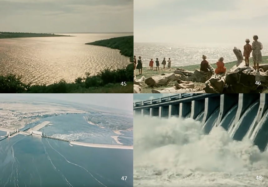 〈 h 〉 People looking out to "sea" ( 45~46 ). Needless to say, the sea here is not the real sea, but the metaphor for the huge reservoirs created by drawing water from the Dnipro River into the plains of Ukraine.